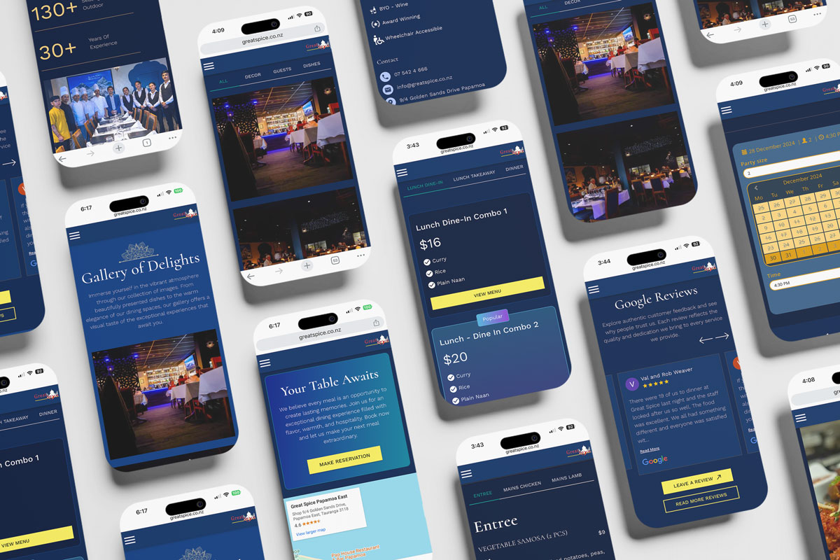 We optimised the website for search engines like Google. This helps the restaurant appear higher in search results when people look for Indian restaurants in Tauranga. Better visibility online means more potential customers can find Great Spice Papamoa.